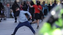 Some demonstrators wore “I am Peter Lynch” badges, in reference to a 61-year-old man who died in prison after being jailed for screaming abuse at riot police outside a hotel housing asylum seekers.