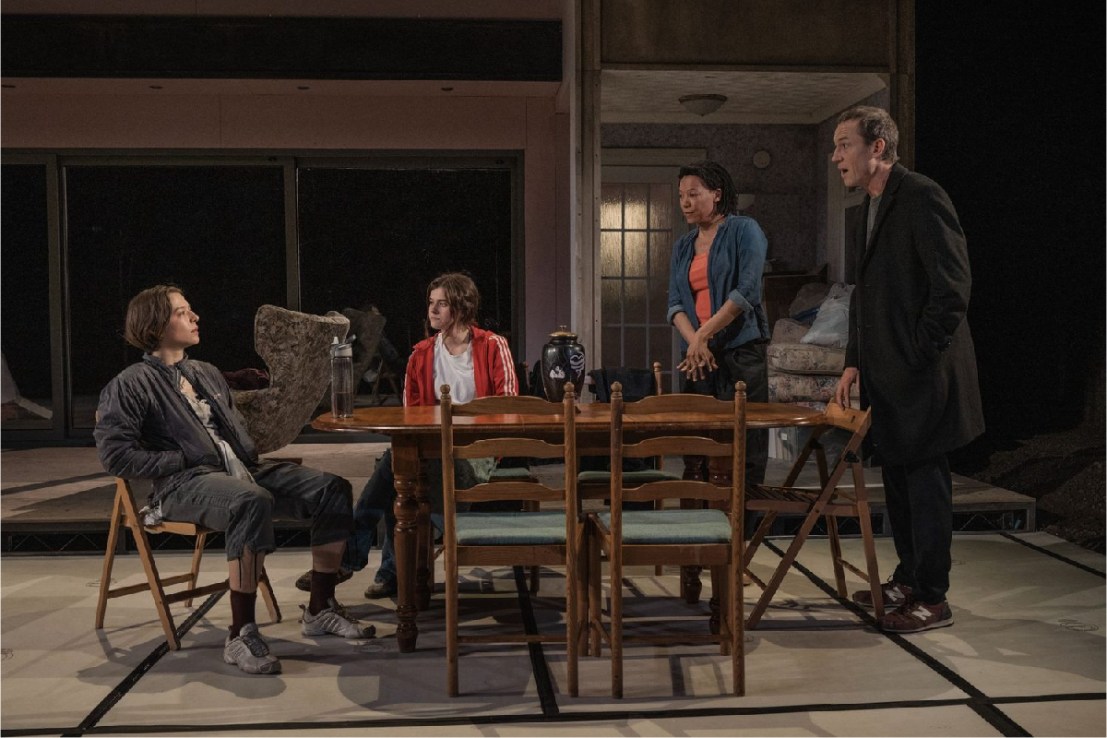 The play charts a night in the life of a complex, knotty family who are gathering to finally scatter the ashes of a man who had taken his own life several years prior. It unfolds in the cold, sparse, open-plan kitchen of the dead man’s former home, now occupied by his well-to-do brother Chris and his family, with the deceased’s directionless younger daughter Issy lodging with them. The return of estranged elder daughter Annie is the source of not-inconsiderable tension – and for good reason.