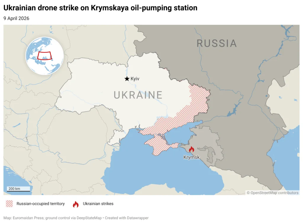 Ukrainian forces struck an oil-pumping station in Russia’s Krasnodar Krai overnight on 9 April, triggering a fire at a key piece of pipeline infrastructure, according to the General Staff of Ukraine’s Armed Forces and Russian local reports.